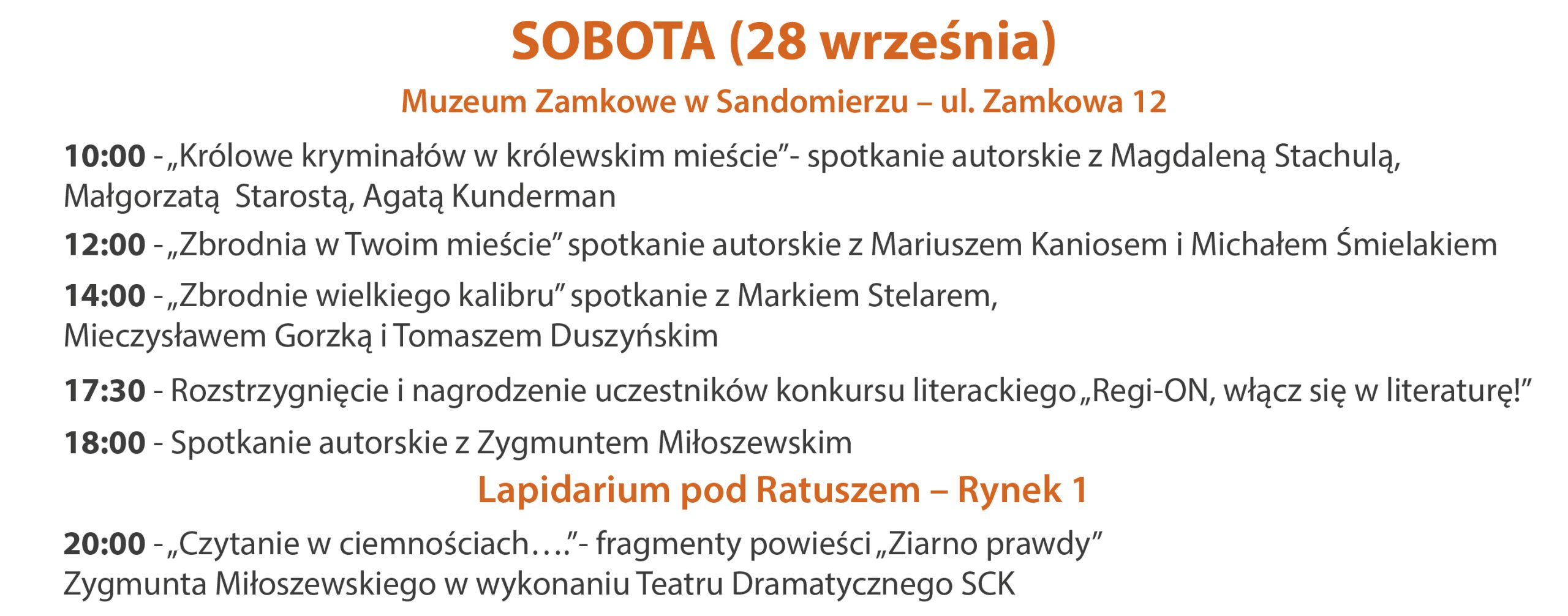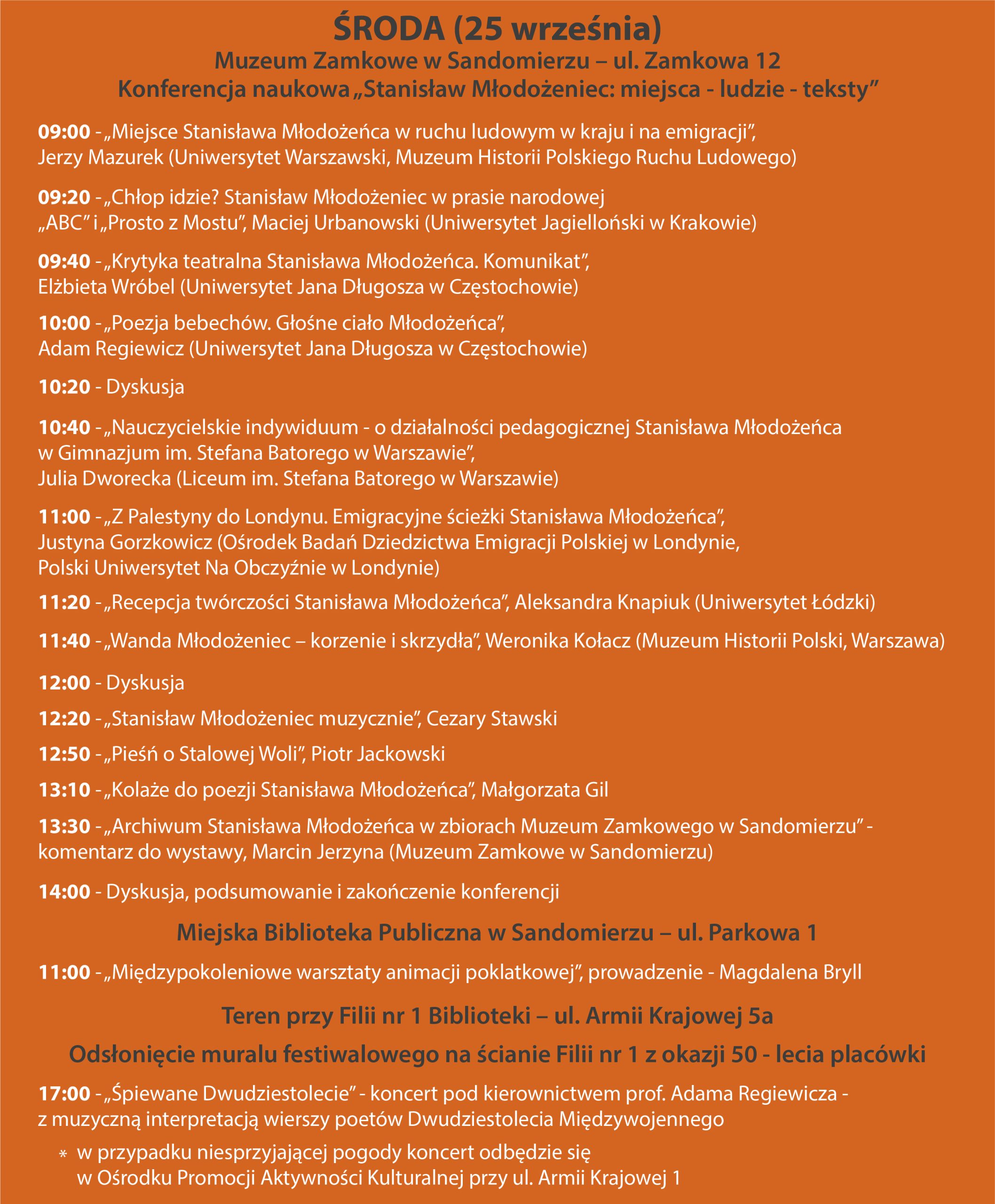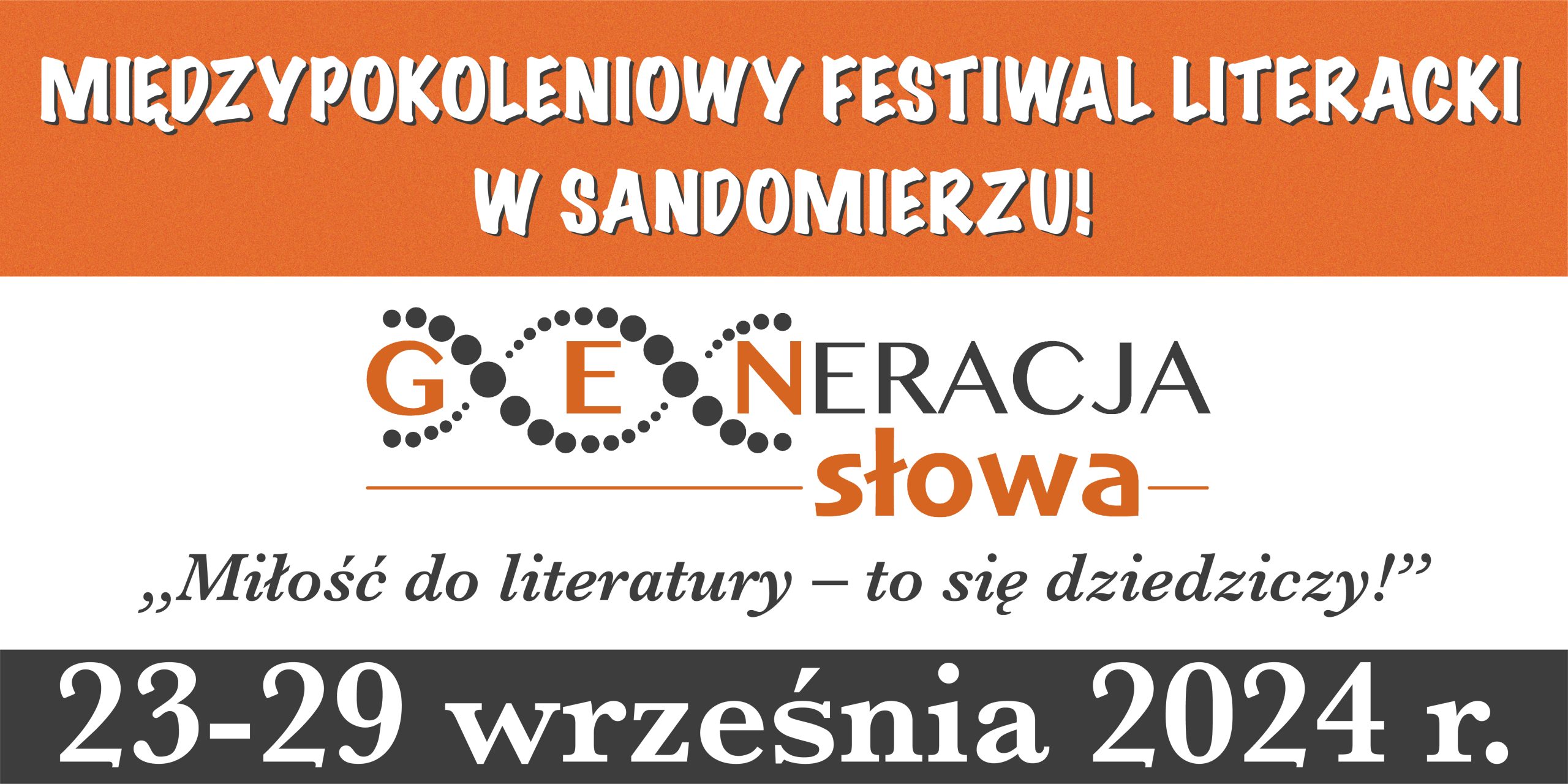 ARCHIWUM 2024 PROGRAM Plakat Festiwalu ARTYŚCI KONFERENCJA NAUKOWA O konferencji w Biuletynie Polonistycznym WYSTAWA KONKURS LITERACKI Regulamin konkursu Formularz zgłoszeniowy Nagrodzone Prace Konkursowe - edycja 2024 I MIEJSCE - Karolina Rosicka II MIEJSCE - Natalia Mazut III MIEJSCE - Anna Łączkowska LITERACKA JAZDA ORGANIZATORZY Organizator główny: www.sandomierz.naszabiblioteka.com www.facebook.com/mbpsandomierzPozostali: PATRONAT HONOROWY – Paweł Niedźwiedź Burmistrz Sandomierza