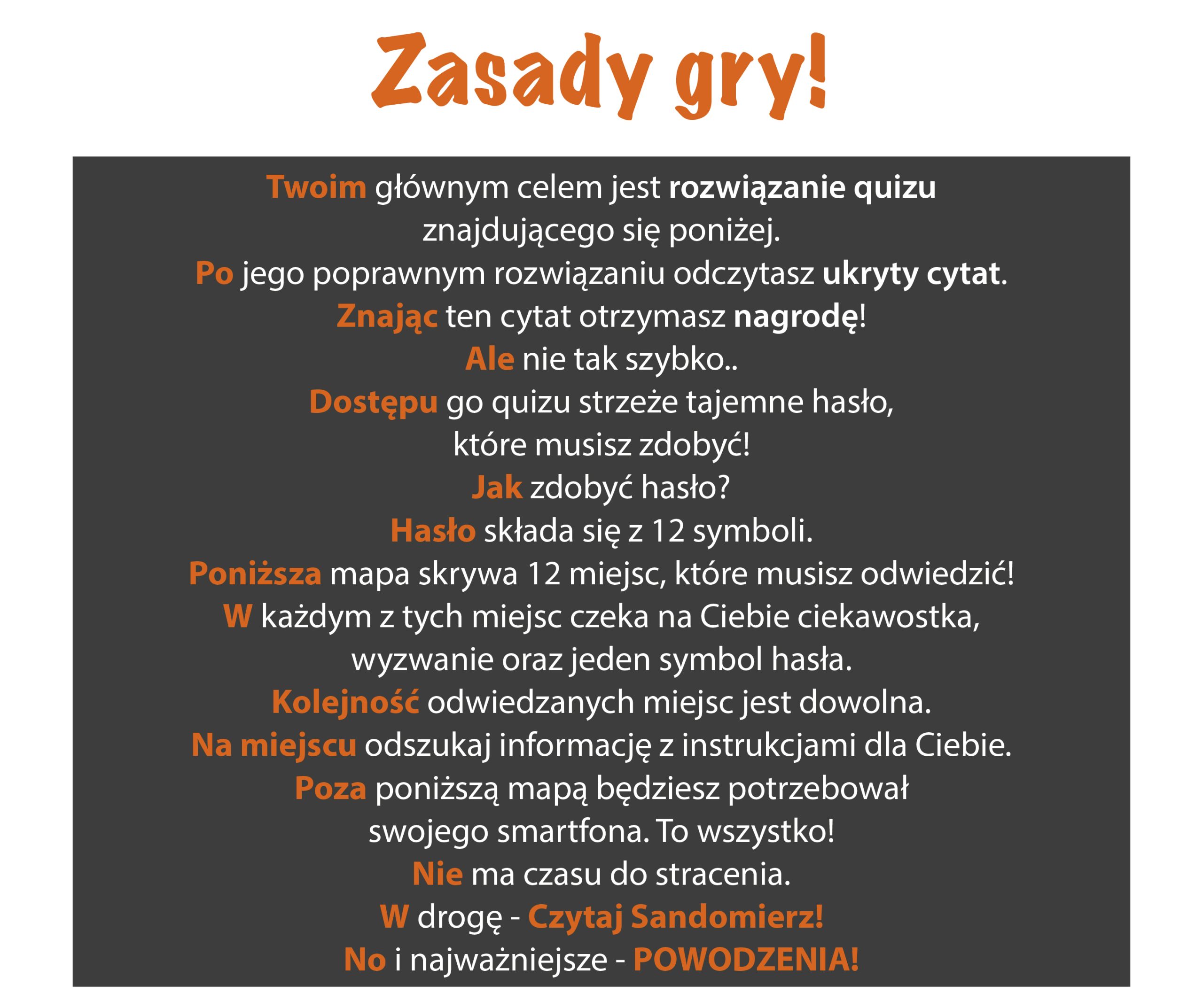 12345 ZDOBYŁEŚ HASŁO? GRATULACJE! W jakim mieście toczy się akcja opowiadań bpa Krzysztofa Nitkiewicza "Szklane wrzeciona"? Rzymkowiec Rzymowiec Sandomierz Sandomingo Czyje rękawiczki opisane są w wierszu Apolinarego Knothe pt. "Rękawiczki"? Bł. Kingi Królowej Bony Królowej Jadwigi Haliny Krępianki Jaka legendarna postać zginęła tragiczną śmiercią ratując Sandomierz? Halina Krępianka św. Jacek rycerz Bobola Sadok Kto jest autorem książki "Czerwone tarcze"? Stefan Żeromski Bolesław Garboś Andrzej Sarwa Jarosław Iwaszkiewicz Kto jest autorem książki "Droga przez wieś"? Jan Adam Borzęcki Stanisław Młodożeniec Wiesław Myśliwski Wincenty Burek Twój wynik to Uruchom ponownie quiz